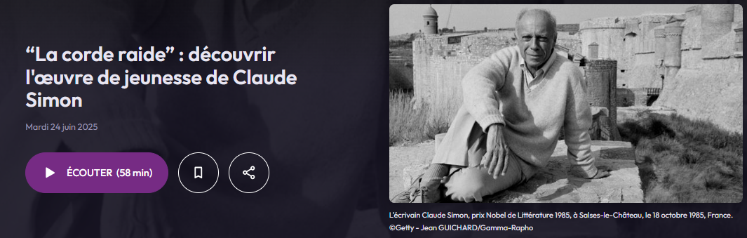 Les deux premiers romans de Claude Simon sont désormais réunis dans un même livre, 20 après sa disparition. L’un de ces textes La Corde raide sera au centre de la discussion avec nos invités la critique Mireille Calle-Gruber et l’écrivain Sylvain Prudhomme.