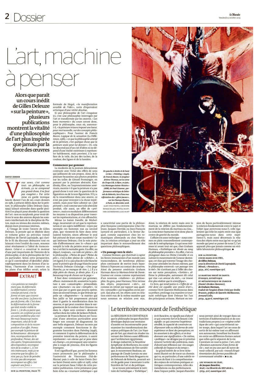 Les cours sur la peinture donnés par Deleuze de mars à juin 1981 à l'université de Saint-Denis sont retranscrits aujourd’hui par les Éditions de Minuit et constituent un document exceptionnel sur la pensée rhizomatique du philosophe, saisie ici en plein mouvement.