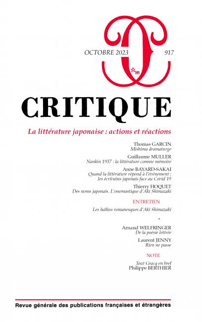 Critique n° 917 : La littérature japonaise : actions et réactions