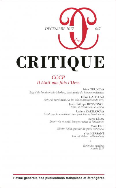 Un homme se réveille dans un train près de la centrale de Tchernobyl, en Ukraine : le convoi est à l’arrêt, faute de rails pour continuer. Dans la séquence suivante, située à Kiev en avril 1986, le même homme discute avec sa femme à l’arrière d’une voiture ; un contrechamp sur la chaussée montre alors le carambolage de trois voitures, dont on comprend vite que ce n’est en réalité qu’une cascade de cinéma. La conversation du couple reprend, insensiblement. Le réalisateur de Raspad (1990), Mikhaïl Belikov, cherche-t-il à souligner que plus rien ne surprend dans une URSS à bout de souffle ? A révéler que tout ceci n’est qu’une mascarade dont plus personne n’est dupe ? Dans l’article « Eisenstein et après. Images sacrées et liquidation », le réalisateur et critique Pierre Léon décrypte pour le lecteur de la revue Critique la façon dont le cinéma, soviétique et postsoviétique, traite la désintégration de l’URSS. A ses yeux, à la déliquescence du monde soviétique – incarnée par la catastrophe nucléaire survenue au printemps 1986, symbole de la rupture de confiance entre l’Etat et ses citoyens – répond l’explosion de la forme fictionnelle soviétique. Le numéro de décembre 2017, « Il était une fois l’URSS », boucle en effet cette année de (non ?) commémoration en analysant les réécritures de la Russie soviétique qui peuplent la fiction et les arts en général. C’est un nouvel imaginaire de l’URSS qui émerge, construit à la faveur d’une oscillation entre curiosité et fascination.