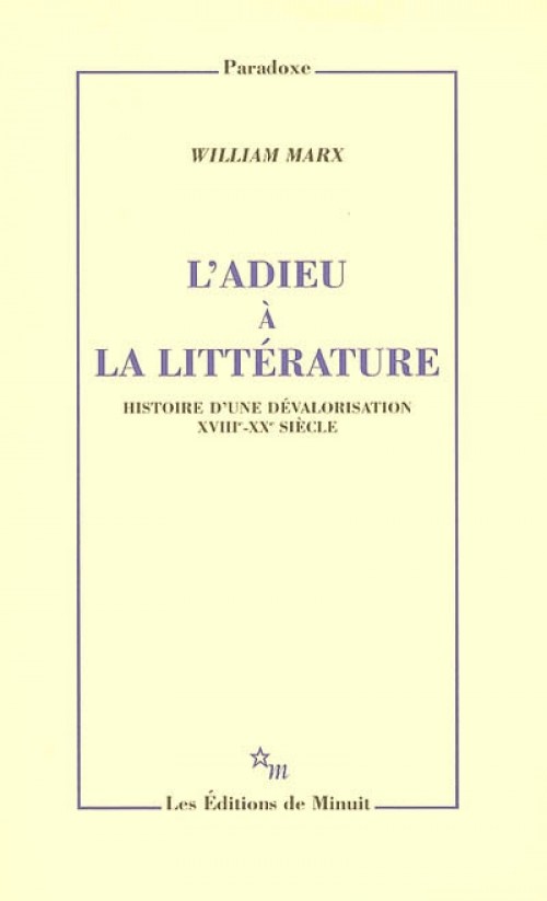 A la charnière du XVIIIe et du XIXe siècle, l'importance attribuée à la littérature augmenta de façon démesurée : ce fut la religion de la littérature ; au milieu du XIXe siècle, la littérature provoqua la rupture et s'enferma dans le culte de la forme : ce fut le temps de l'art pour l'art ; à partir de la fin du XIXe siècle, souffrant de la situation marginale dans laquelle ils s'étaient eux-mêmes placés, les écrivains se mirent à dénigrer leur art : ce fut l'adieu à la littérature. Expansion, autonomisation, dévalorisation : il existe une dialectique qui conduit inévitablement du sommet à l'abîme.