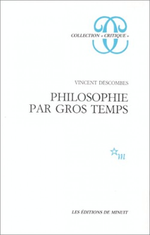 Sa Philosophie par gros temps est foisonnante. Elle défie la critique, car elle a l’ambition de tester l’ensemble des baromètres avec lesquels les philosophes mesurent l’esprit du moment, construisent des métaphysiques de l’actualité ou prennent – en tant que philosophes – des positions politiques ! Bien sûr, notre époque n’est plus celle de l’intellectuel total, toujours au feu des prises de positions : pourtant Descombes n’a pas de tendresse particulière pour la sophistique quiétiste qui semble, depuis quelques années, ravir tant de beaux esprits...