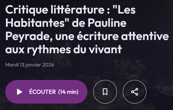 « Avec Les habitantes, Pauline Peyrade livre un roman où se mêlent les destins de femmes [...] et de leur environnement. Une langue paisible, un enjeu violent. »
