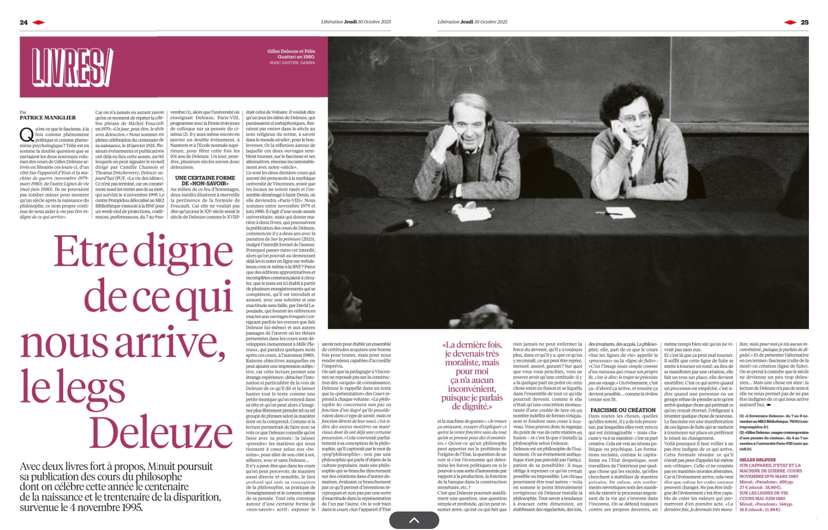 Article de Patrice Maniglier paru dans Libération le 30 octobre